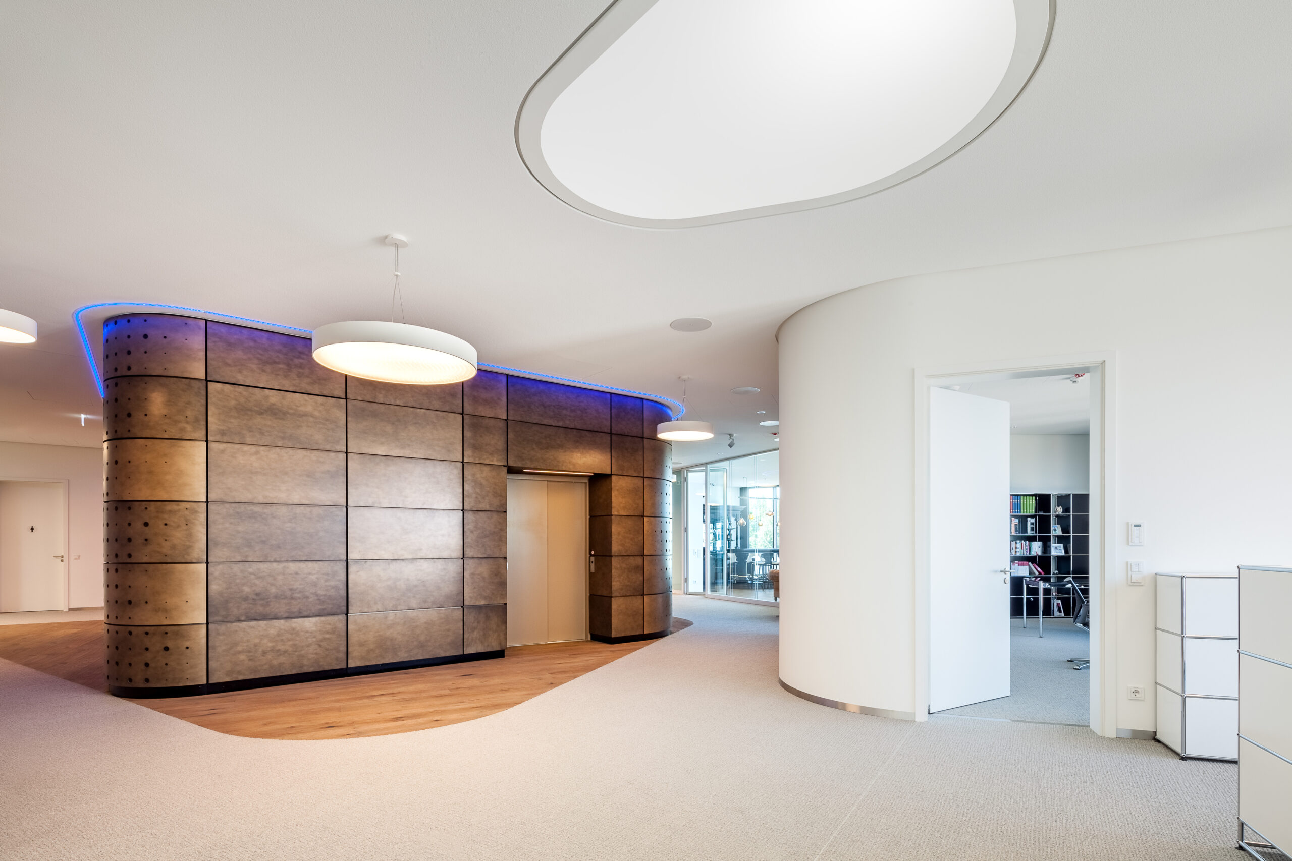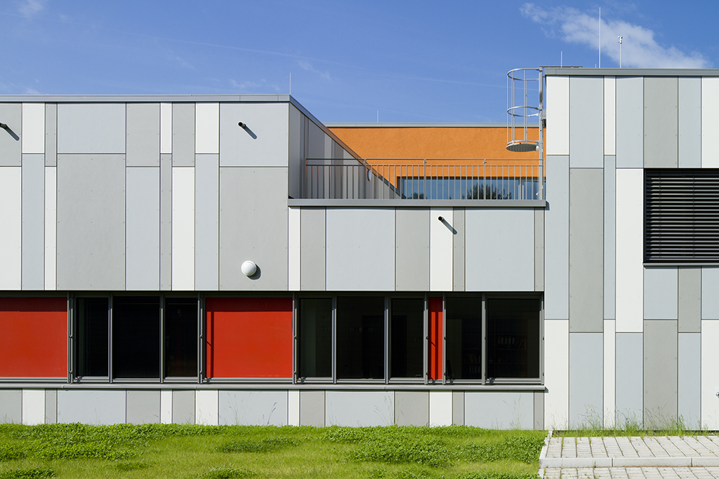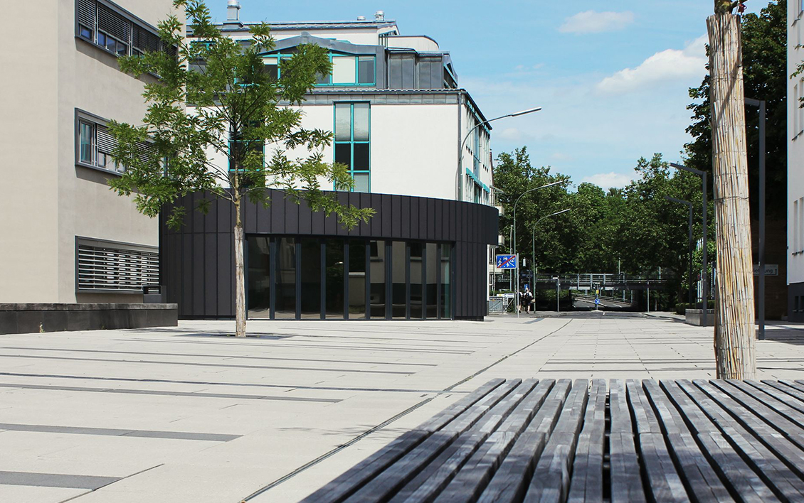 Hauptziel der Umbaumaßnahmen war es, die Räume des ehemaligen Kindergartens zu einem modernen Pfarrbüro mit 6 Arbeitsplätzen und einem kleinen Pfarrsaal umzunutzen. Der Flachdachbau wurde komplett energetisch und brandschutztechnisch ertüchtigt. Eine große Herausforderung stellten die Schäden der Sichtbetonarchitektur an der Außenfassade dar. Diese wurden in Absprache mit den zuständigen Denkmalschutzstellen feinfühlig saniert.